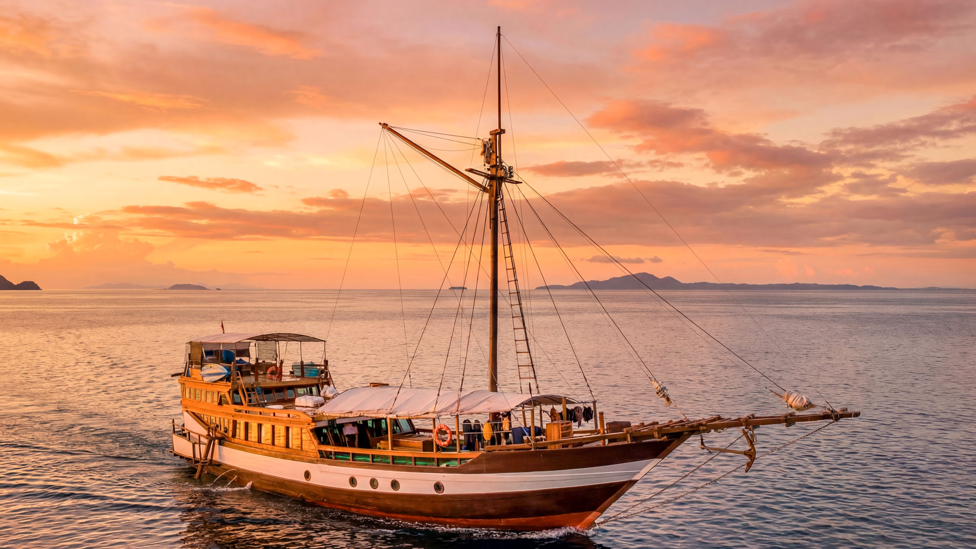 A small boat of 25 meters with everything needed for a laid-back adventure in Raja Ampat, shared in a warm and convivial atmosphere. It is the ideal choice for families or a small group of friends looking for a budget friendly private cruise. With only 3 cabins, atmosphere onboard is easygoing and friendly, with several areas to relax between activities. Cabins are compact yet comfortable and thoughtfully arranged, all with AC and ensuite bathrooms. Life on board centers around the outdoor dining area, the shaded lounge and the 360° rooftop deck, a perfect spot to enjoy the scenery or a sunset drink. Days are active and varied. Divers can enjoy up to four dives per day, while snorkeling, kayaking through mangroves, beach set ups on remote islands, village encounters and birding tours offer many ways to explore the region. The meals are generous and freshly prepared. Quality coffee made from local beans and a selection of other drinks are available throughout the day.